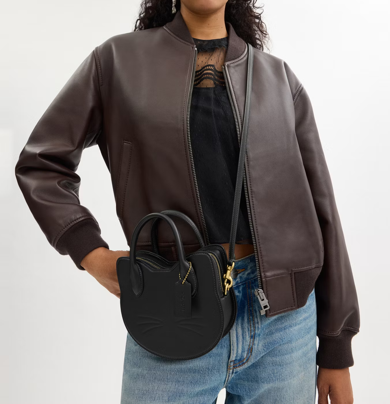 YOU ARE LOOKING AT A . One cool cat. The whimsical style is crafted of our buttery soft glovetanned leather. HALLOWEEN CAT BAG. Crafted to last, the leather is sourced from farms that use regenerative agricultural practices – those that help maintain and rejuvenate grasslands, increase biological diversity, soil health and productivity, and could lead to increased carbon absorption.